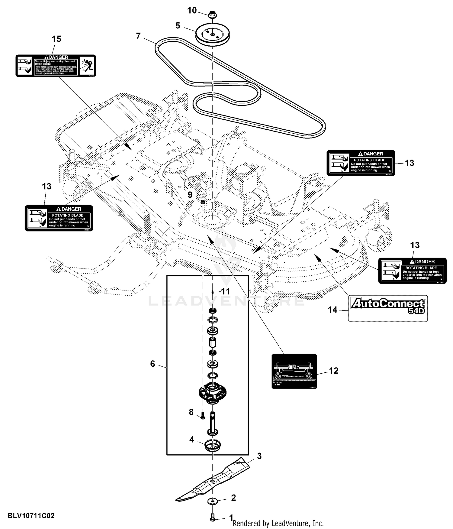 John Deere 1025r Compact Utility Tractor Pc11842 Belt Spindle Blade 54 Inch Domestic Mower Deck